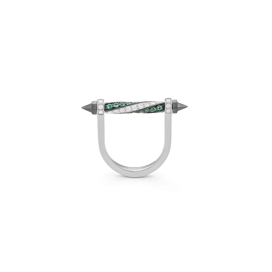 Djiin summarizes all the magic of the legends of the East. Richly decorated with diamonds and precious stones, this rotating ring is a hypnotic and subtle representation of an ancient culture with a touch of modernity.