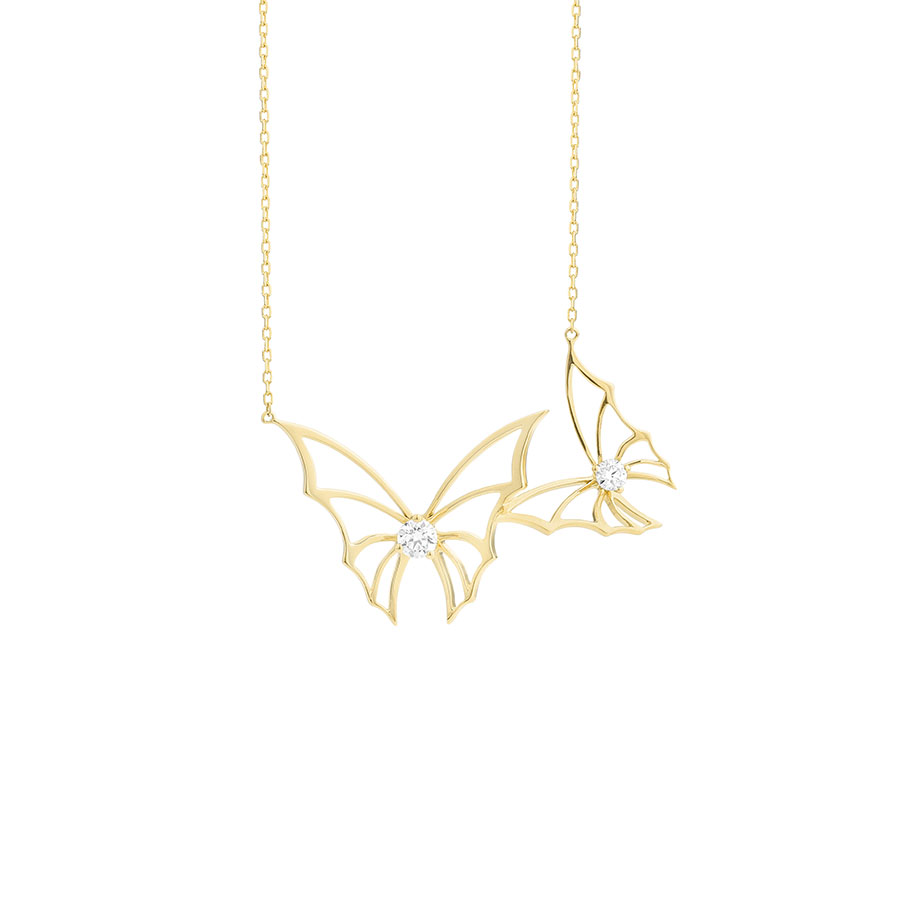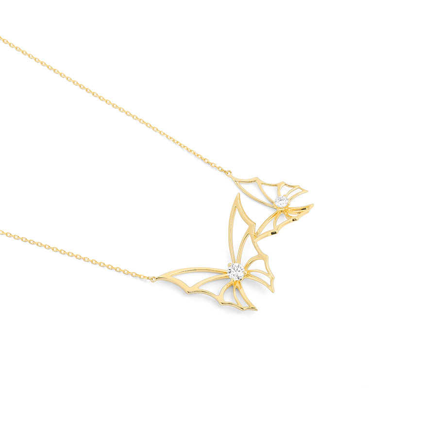 Pendant with two butterflies, diamonds set in central motif with 42 cm chain