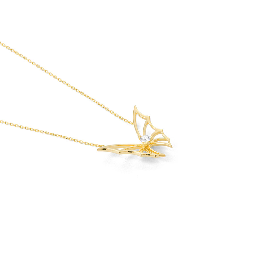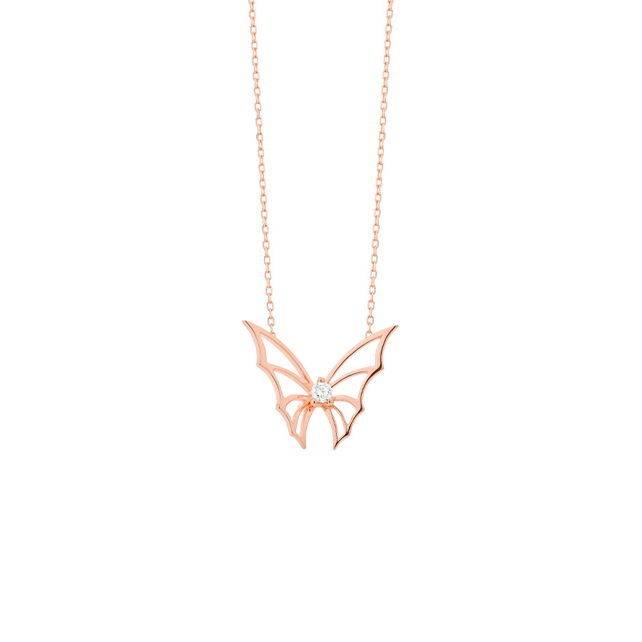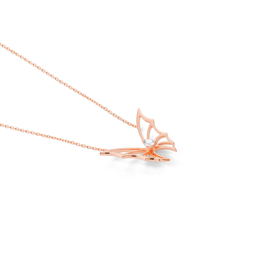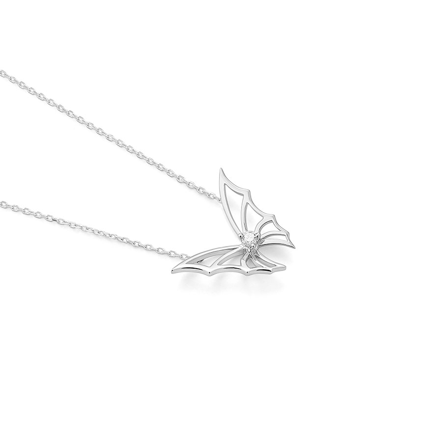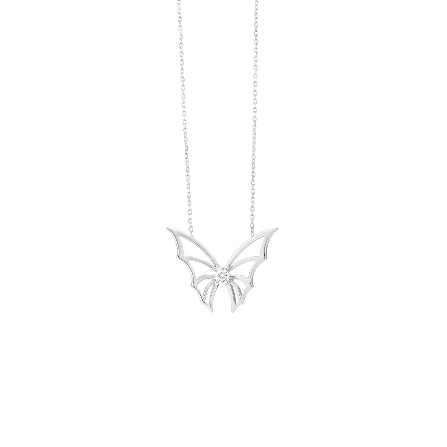 Pendant with small butterfly, diamonds set in central motif with 42 cm chain