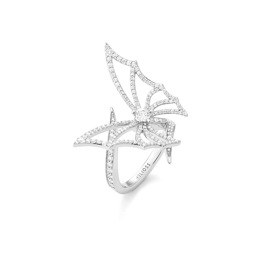 Anillo de aro abierto con mariposa grande pavé, diamantes engastados en aro y motivo central.